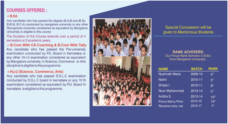 Amrutha College, established in 2007 . Recognized by Government of Karnataka and affiliated to University of Mangalore. Located in Mangalore at Karnataka. The Institution is managed by Sunaada Educational Trust ® . The institute is a co-educational, situated in calm, quiet and serene atmosphere. The Institute enjoys the unique advantage of a peaceful academic environment. It provides ample scope for enriching the social systems with diversified cultural heritage of Karnataka and especially of Mangalore through proper education and training. Amrutha College provides PUC (Science,Commerce,Arts), B.com with CA & B.com with Tally courses.