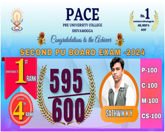 PACE PU College is one of the prestigious colleges in Karnataka, well known for its academic excellence. Over the years, we’ve worked hard to guide and support our students in achieving their goals. Our college focuses on nurturing students for all rounded development and actively contributes to society We offer extensive and integrated coaching for competitive examinations like NEET, JEE, KCET, etc. Many of our students have achieved top rankings in state and national level competitive examinations, making us the best PU College in Shivamogga District. We are proud to have an excellent teaching faculty proficient in instructing both competitive and board exams. Our lecturers are highly qualified with exceptional contmunication skills and they are continuously enhancing their knowledge base to provide the best to our students.