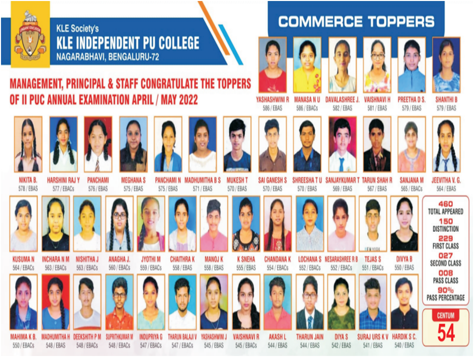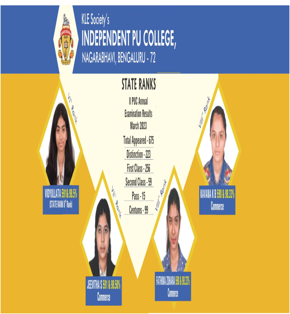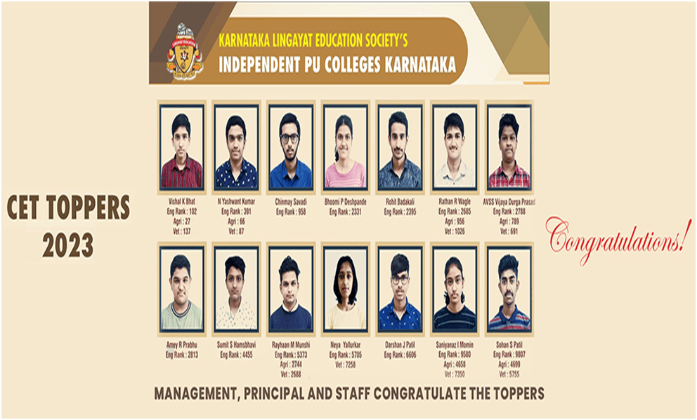 KLE INDEPENDENT PU COLLEGE CET TOPPERS RESULT – 2023