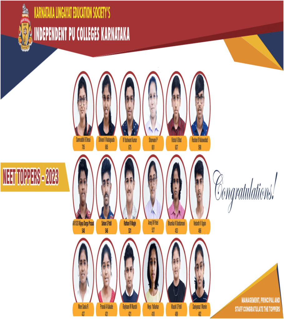 KLE INDEPENDENT PU COLLEGE NEET TOPPERS RESULT – 2023