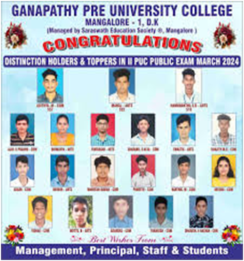 It was a proud moment for the Saraswat Education Society (SES) when it added the Ganapathy Pre-University College to its existing Hampankaṭṭa (Mangaluru) Campus on 2nd July 1972. Offering quality Higher Secondary education in Commerce and Arts and strengthened by the legendary reputation of its parent Institution, the Ganapathy Pre-University College quickly attracted students not only from Mangaluru but also from Kasargoḍ, Manjeshwar and Kanhangaḍ. The College is located in the lush green 2.3-acre campus of the Ganapathy High School (GHS) on GHS Road, which also includes the Ganapathy English Me n exclusive residential National Service Scheme (NSS) Camp is organised for the students every year which helps them share experiences and broaden their horizons. The NSS unit of the college was declared the best in the state by the Government of Karnataka and encouraged the students to attend the State and National Level Leadership Camps. The College firmly believes that sports helps to build character and the students are encouraged to participate in individual and team sports events at various events both at tāluka and district levels, winning many medals and accolades.The cadets from the National Cadet Corps (NCC) have represented the college in the prestigious Republic Day parade at New Delhi where they have been awarded the Prime Minister’s Award during the Republic Day Parade. The cadets from Ganapathy Pre-University College were also invited to attend the prestigious Vayusena Camp in Bangalore few years back.Sports day, the flag hoisting ceremony on Karnataka Rajyotsava and Independence Day are very special for the students when a storehouse of talent is on display for parents to watch.dium School.