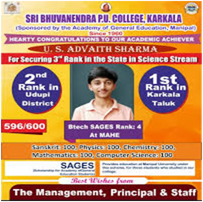 Divinity of the saint and sublimity of the nature have rendered the campus a balanced blending of an ideal surrounding meant for the all round development of the young in their formative years. Located not far from the town, (1 Km) the campus has the advantage of fresh breeze and an unpolluted life necessary for healthy body and healthy mind of the young and the innocent.An unimaginably vast stretch of land measuring about 14 acres within the municipal limits of Karkala has been the legacy of the late Prof. K. Damodar Kini, the founder principal of Sri Bhuvanendra PU College due to his distant farsightedness prompted by dedicated determination to enlarge the message of Sri Bhuvanendra. The land could accommodate and enrich the infrastructure such as open air theatre, hostels, full pledged indoor stadium, etc., and could provide abundant scope f.The great visionary Padmashree Dr.T.M.A. Pai, due to his vision Sri Bhuvanendra College, Karkala came into existance in the year 1960. Sri Bhuvanendra P.U. College, which bifurcated from the degree college during the year 2001-2002, offers Two years Pre-University courses in Science, Commerce and Arts.The managaement of the college is vested in Sri Bhuvanedra College trust, a registered body sponsored by the Academy of General Education, Manipal.