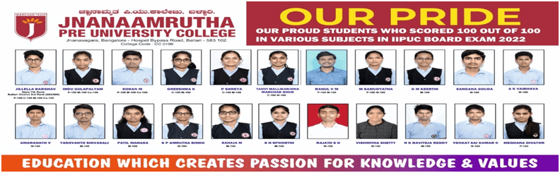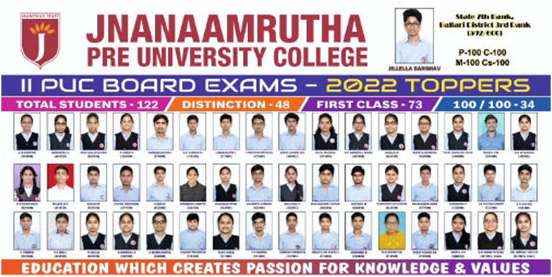 JNANAAMRUTHA PU College, Ballari, Enchanting and picturesque location which is away from the maddening chaos of the city. . Even today, the town is surrounded by vast tracts of cornfields and a million shades of green alongside the mountains that can be seen in the distance. The serene campus lulled by A quiet place, surrounded by the iron rich undulating mountains of Bellary district, is a princely state and the envigorating freshness of the unique surroundings make it an ideal gateway for pursuing education after grade 10 with a tactfully designed integrated entrance coaching curriculum.