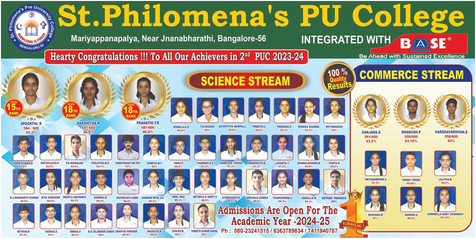 Our Institution stands on a high note with outstanding ranks and distinction results in the PU college. The institution has successfully placed itself in a position of academic leadership with the help of highly qualified staff members and a well-equipped academic infrastructure that allows students to pursue their goals. The young learners are mould to nurture their minds with knowledge and wisdom in an effort to cultivate the right temperament for brilliance.