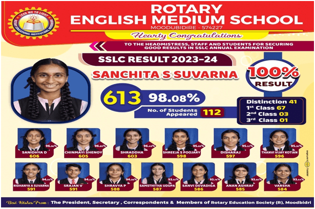 Rotary English Medium School and Rotary English Medium K. G. School are managed by the Rotary Education Society (R) Moodubidire which is a registered society sponsored by the Rotary Club of Moodubidire. The school is situated on the side of Moodubidire – Venur Road. The School has its own building and playgrounds. The class room and library are well ventilated and fitted with electric lights.