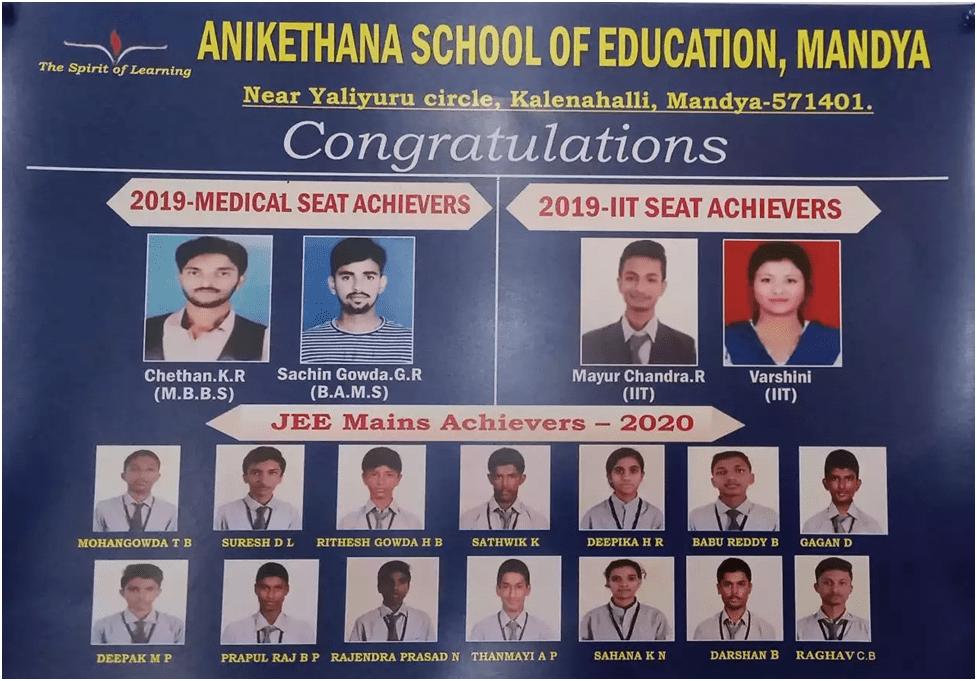 Anikethana School Of Education is an Institution started by a group of progressive thinking Academicians with an intension of providing quality education for students, to train them for developing competency to take up State level as well as National level competitive examinations and build their future for changing their scenario.