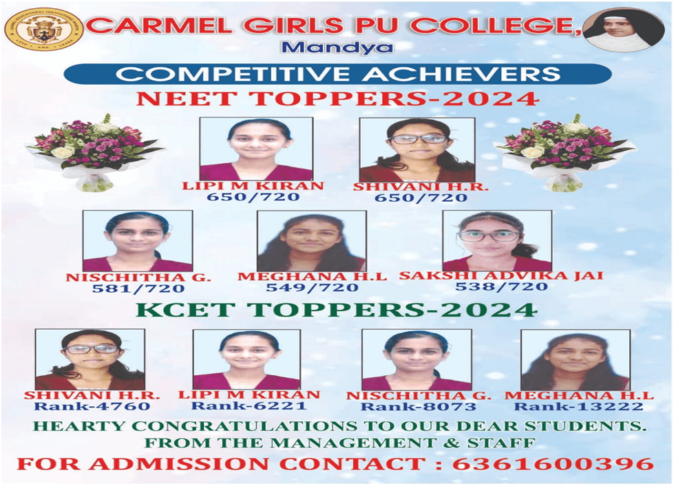 At Carmel Composite PU College, Mandya, our ideologies revolve around fine-tuning students’ critical thinking abilities, sensibilities and nuances to transform them into socially conscious and responsible individuals. Through a holistic developmental approach, our students are guided to rise to their highest frequency by morphing a cultural, scientific and pedagogical approach crafted for growth. We envision enabling our students’ to explore the liberty of being a thinker, healer, student, and human. We further, strive to ensure that our students are empathetic humans who proactively respond to concerns and conflicts inherent in today’s reality. Through these interpersonal interactions, our students are made aware and encouraged to empower the marginalized individuals of society.