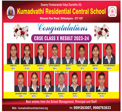 Kumadvathi Residential Central School (KRCS) is one among the several educational institutions run by “Swami Vivekananda Vidya Samsthe”, a voluntary organization registered under Indian Trust Act. The Trust has its head office at Shikaripura and is contributing its share in providing quality education and also doing social services since 1996.