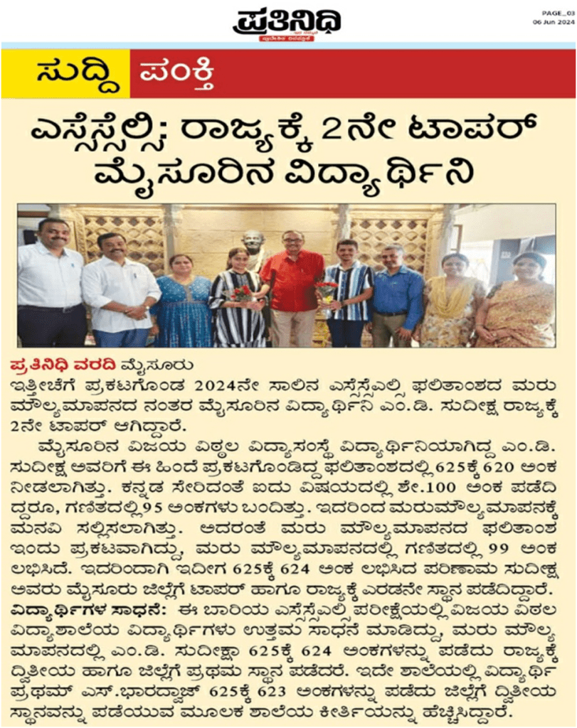 His Holiness Sri Sri Vishwesha Thirtha Swamiji, Adokshaja Sri Pejawar Mutt, Udupi established Vijaya Vittala Vidyashala, an English Medium Co-educational school, situated at a serene locality in Mysore in 1985. The school meets the persistent demands of the people in the locality catering to the all-round development of the pupils. The school has laid its indelible impressions upon the minds of Mysoreans with its remarkable achievements in curricular and co-curricular activities.