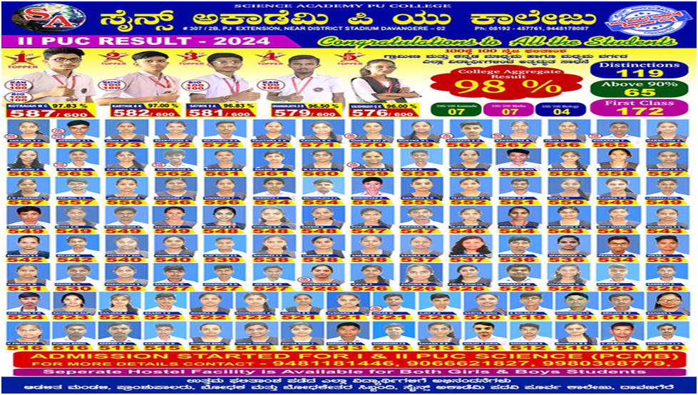 With “Achievement Has No Barriers And Achievers Have No End” As Its Motto, The Academy Is Shaping Itself Into A Center Of Education In Davangere. SCIENCE ACADEMY Believes In Speaking Only Through Results And Not Through Grand Publicity