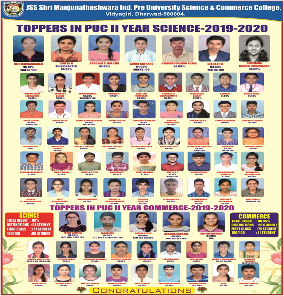 JSS’s Shree Manjunatheshwara PU college (SMPU) vidyagiri, Dharwad is an offshoot of Janata Shikashna Samathi, Dharwad. The very edifice called SMPU had its humble beginning in the year 2001. And ever since its inception it has been revolutionizing and refining the education scenario. It has developed a peerless tradition of excellence in education for the students of North Karnataka and elsewhere.