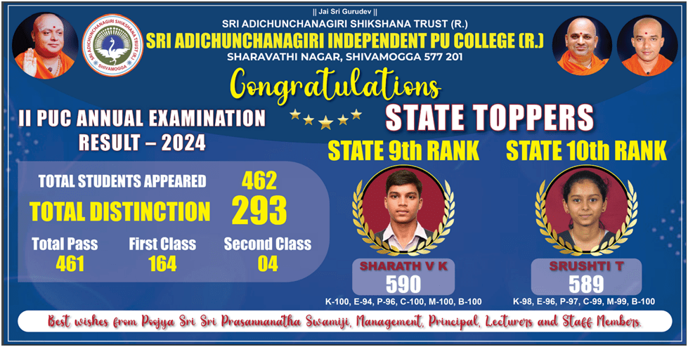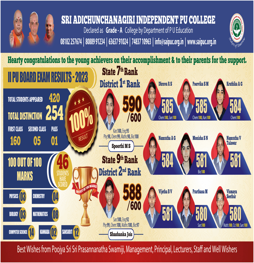 Our SAIPUC (Sri Adichunchanagiri Independent PU College) provides a positive and creative learning environment, which incorporates a rich and varied programme of experiences and opportunities, both in the college and within the wider community. This enables all the students to experience success that can be celebrated and valued, thereby developing a positive attitude to learning and life.
